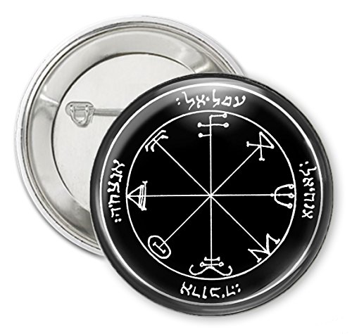 Studio : Magical Mode Publisher : Magical Mode Binding : Jewelry Product Description King Solomons Seal 3rd Pentacle of the Saturn for protection against any plots made by others for defense against evil spirits. Angelic Names of the seal to conjure: Omeliel, Anachiel, Arauchiah and Anazachia. Collectors 2.25" Round Pinback Button Featuring Magical Mode art. Art by Magical Mode artist, Angeline. Includes Drawstring Bag. 0