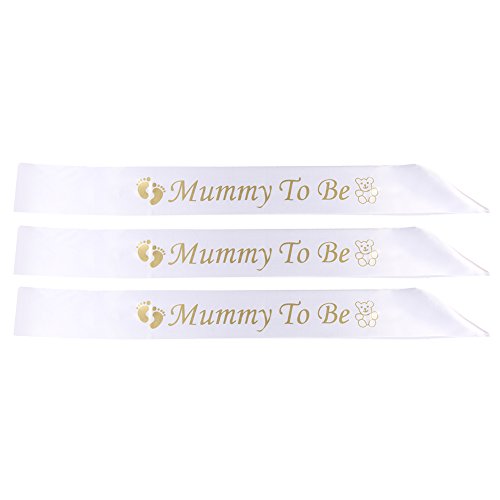 DECORA 3 Pieces White Elagant Mummy To Be Satin Sash for Baby Shower Baby Birthday Party Decorations