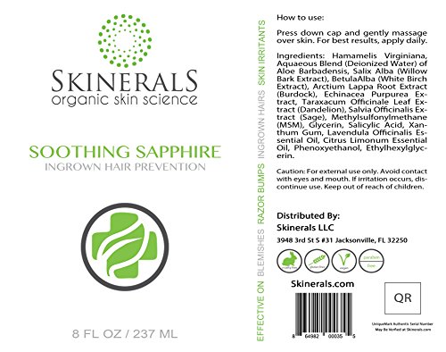 Skinerals Organic Ingrown Hair Prevention Soothing Sapphire for Razor Bumps and Prevent Acne