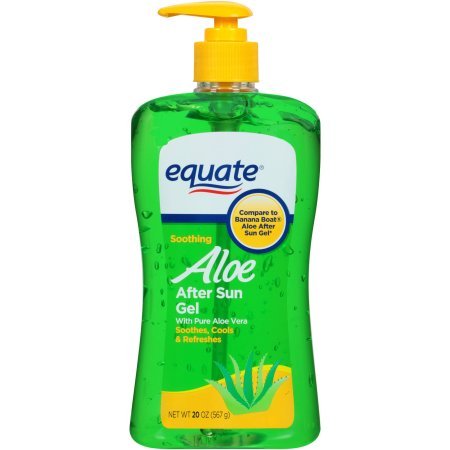 Studio : Equate Publisher : Equate Binding : Misc. Product Description Equate Aloe After Sun Gel helps moisturize and soothe skin on contact, providing relief for dry, sunburned skin. This gentle and hypoallergenic formula uses natural moisturizers to hydrate on contact to help restore skin's natural moisture balance. Aloe vera helps bring fast relief to uncomfortable skin irritations like sunburn, minor burns, minor cuts, scrapes, insect bites and windburn. This 20 oz bottle of soothing aloe gel also has a convenient pump dispenser so you can get the amount you need with less mess. 0