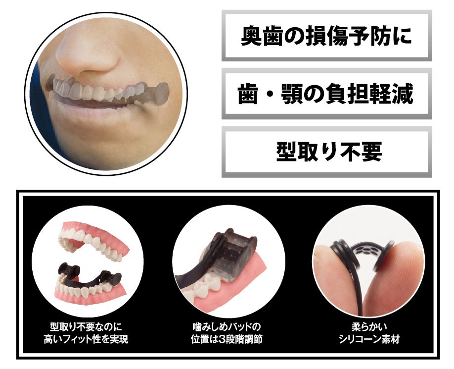 | 商品説明 | 食いしばりでパフォーマンスをサポート! 大きな力を入れるときに必要な歯への負担を軽減。 |
