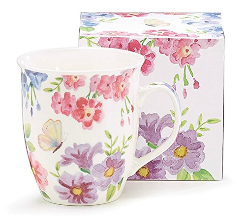 -. Feature : Design: White mug has lavender and pink flowers with butterflies covering the mug / Size: 16 oz / Material: Porcelain / Dishwasher/Microwave safe, FDA approved
