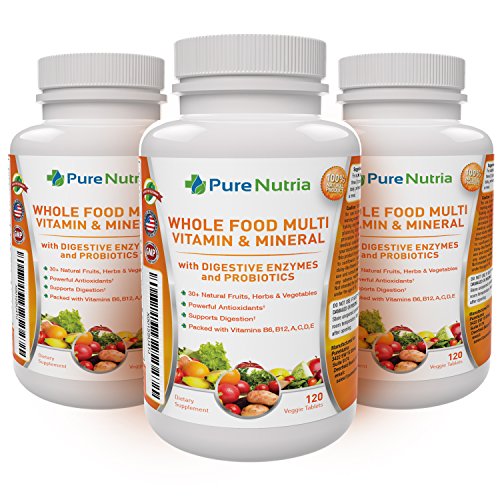 -. Feature : 120 WHOLE FOOD MULTIVITAMINS With Minerals and Probiotic Blend - 30+ Natural Fruits, Herbs and Vegetables providing essential nutrients for a Balanced Diet and Optimal Health / A STRONGER, HEALTHIER, ENERGIZED FEELING - Rich in Food Based BIOACTIVE Vitamins and Minerals. High concentration of Vitamin B-12 (8333% DV), Vitamin D (500% DV), Vitamin C (200% DV) supports heart health, bones, immune and digestive systems, nervous and hormone systems. This Potent Multi Vit boosts your system under the stress and strains of everyday life. / HIGHER ABSORPTION, GENTLE AND EASY TO DIGEST - With Plant based enzymes and probiotics our Whole Food Formula supports a smooth digestion. / 100% NATURAL, 100% SAFE - Made in the USA, NO Artificial Colors, NO Preservatives, GMO FREE! / GREAT VALUE - 120 Veggie Capsules - 40 Day Supply - An Essential Dietary Supplement for everyone