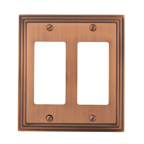 Amerelle 84RRAC Steps Cast Metal Double Rocker/GFCI Wallplate, Antique Copper