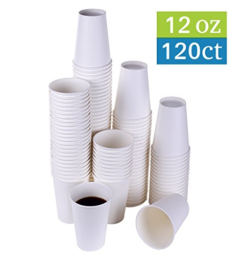 TashiBox 12 oz White Hot Drink Paper Cups - 120 Count - Disposable Paper Coffee Cups