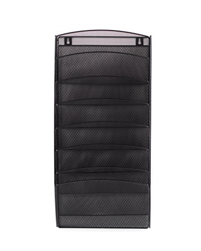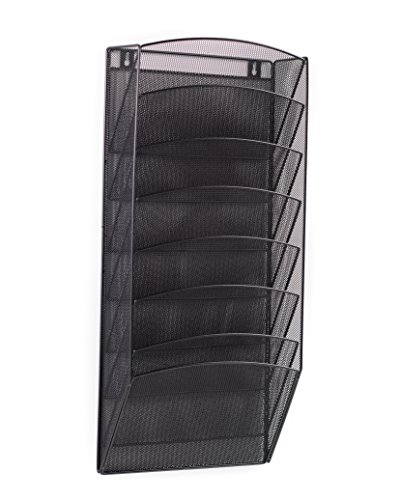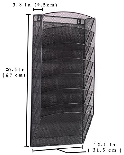 - PRODUCT SIZE & MATERIAL: 26.4" x 12.4" x 3.8" l 8 Section wall mounting racks- Black ( Wall mounting hardware not included) l Elegant and contemporary mesh construction with durable powder coat finish file pocket take full advantage of your vertical space,giving you the flexibility to fit legal or letter size documents with ease.Very easy to set up.
