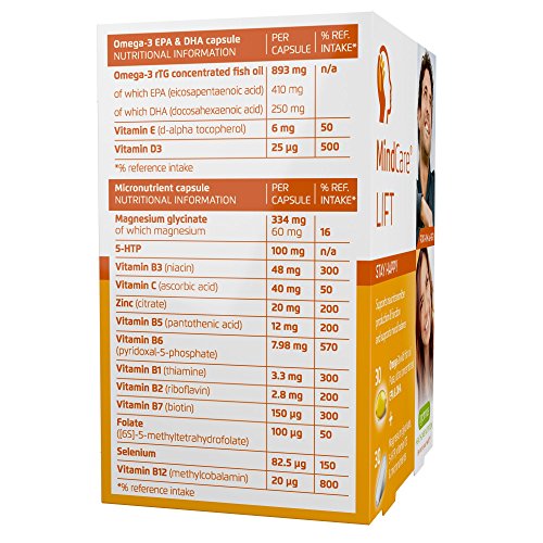 MindCare LIFT, stay happy – omega-3 wild fish oil, magnesium glycinate, 5-HTP & multivitamins for mood support, brain function and...