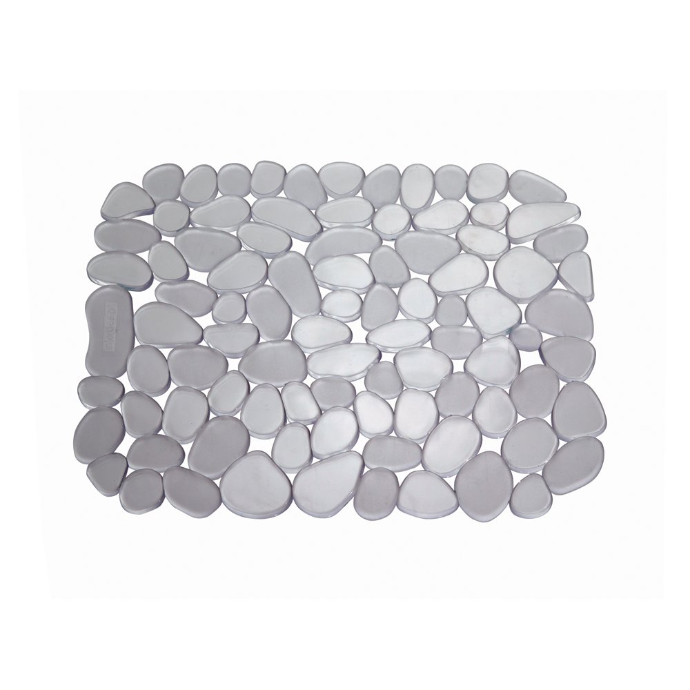 Made from unique jelly-like plastic material, the one of a kind pebblz sink mat by interdesign sports a distinct appearance resembling natural pebbles found on riverbeds. This sink grid sports different textured pebbles shapes, some of which have a smooth surface while other have a brushed, rough feel; just like the ones found in the wilderness. This sink mat fits most sinks and can be trimmed down to the desired drain size by cutting away pebbles. This sink protector serves as a perfect solution for safeguarding your sink and dishes from scratches and chips for longer duration. This sink grid features a ventilated construction that facilitates easy flow of water, in and out, while preventing small items from slipping into the drain.