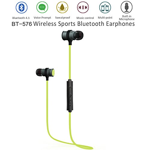 -. Title : Vproof BT-576 Sport Bluetooth Earbuds With Earhook 4.1 Wireless Bluetooth Headphones Lightweight Noise Cancelling earphone Built-in Mic & HD Crystal Clear Sound Technology (Green)