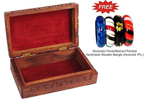 - Feature : Crafted using the finest richly hued timber Indian Rosewood and further adorned with Mughal inspired hand carved floral motif. Dimensions: Length - 8 inches, Width - 5 inches, Height - 2.5 inches. / The box comes with a velvet inner lining to ensure that its contents remains scratch free, makes it ideal to store jewelry or family heirlooms. / Also can be used to keep precious stones, pearls, herbs, tarot cards, Feng shut items and add a touch of class to your dressing table or any other desk. / Handmade by skilled artisans from Saharanpur - India's largest hub for high quality wooden handicrafts.