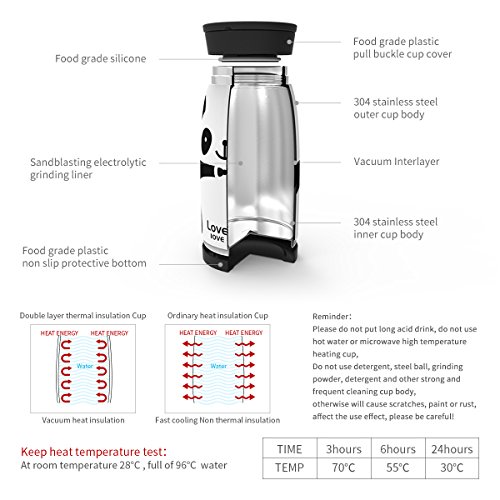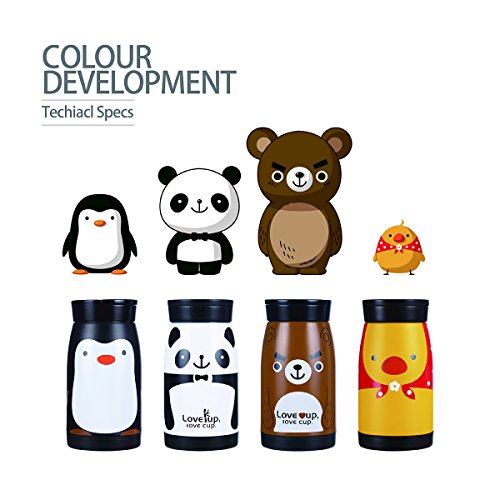UPSTYLE Portable Thermos Travel Mug Cute Cartoon Design Vacuum Insulated Stainless Steel Thermos Water Bottle Coffee Thermos Vacuum Flask Vacuum Cup for Children Size 260ml, Panda