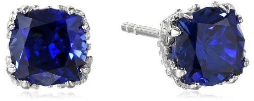-. Title : Created Gemstone Jubilee-Cut Stud Earrings with Crown Setting in Sterling Silver (7mm)