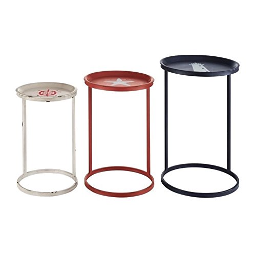 -. Feature : Finish: Distressed Iron / Nautical design and appeal / Nesting Tables / Navy: White Lighthouse, Red: White Starfish, White: Red Helm / Set of Three