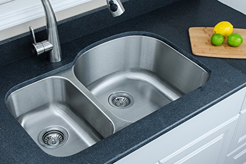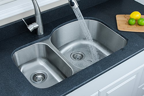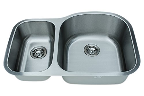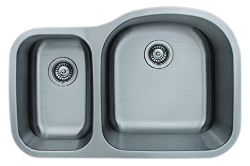 Wells Sinkware CMU3221-79D-16 16-Gauge 30/70 Double Bowl Undermount Kitchen Sink, Stainless Steel