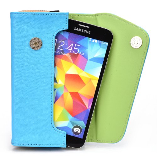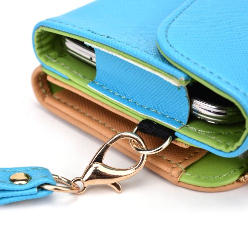 - Title : Xolo Q3000 Wristlet Clutch Wallet with Shoulder Strap for Women | Semi-Gloss Powder Blue and Tan with Matte Olive Green + ND Cable Organizer