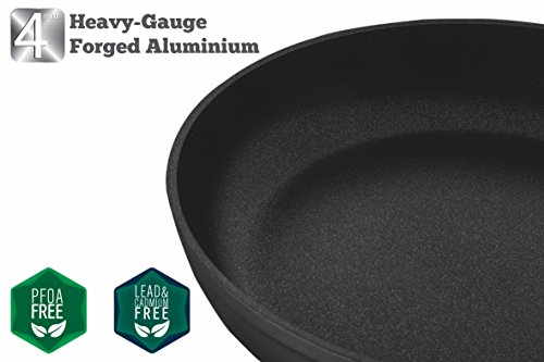 LATEST TECHNOLOGY: 4mm of forged aluminum provides a thicker, stronger pan that is coated with three layers of premium QuanTanium nonstick titanium coating.