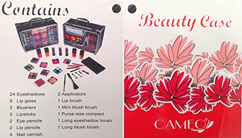 Includes: Eye shadows , blush, powders, nail polish, pencils, sharpener, mirror and brushes