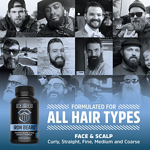 Grow the Lush, Full Beard Your Face Deserves This powerful enhancer gives facial hair the nutrition boost it needs to achieve its full potential for the thick, vibrant, manly beard you've always wanted. As essential nutrients build up in your system, they work synergistically to help boost natural growth, add thickness to sparse, thin areas and give you epic fullness and a stunning, luxurious, silky-smooth beard. How Iron Beard Works Key nutrients that may be missing from your diet come together to help balance out the perfect environment in your body for maximum beard and hair growth support. Zhou's scientifically formulated complex includes: Biotin. Provides 5000 mcg. of this important nutrient to help protect hair from breakage and nourish and support new and existing growth. Collagen (Hydrolyzed). Contains 18 essential amino acids needed for the formation of protein in the body. Helps support healthy cell growth in hair, skin and nails. MSM (Methylsulfonylmethane). A naturally occurring compound found in many food, MSM aids in the production of collagen and helps support supple, healthy hair and skin. Vitamin B12. Essential to the formation of red blood cells, which supply oxygen- and nutrient-rich blood to the scalp and hair follicles. Vitamin A. A powerful antioxidant that helps enhance the formation of healthy cells. Folic Acid. Supports the development of healthy DNA, which helps control tissue growth and cell activity. Works with other B vitamins in this formula to help support healthy growth. Iron Beard Complex. This unique, trademarked blend of botanicals beneficial to hair health includes Chinese herbal fo-ti (he shou wu), nettle, pumpkin seed and saw palmetto extracts.Feature