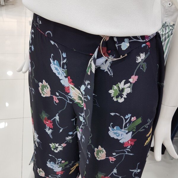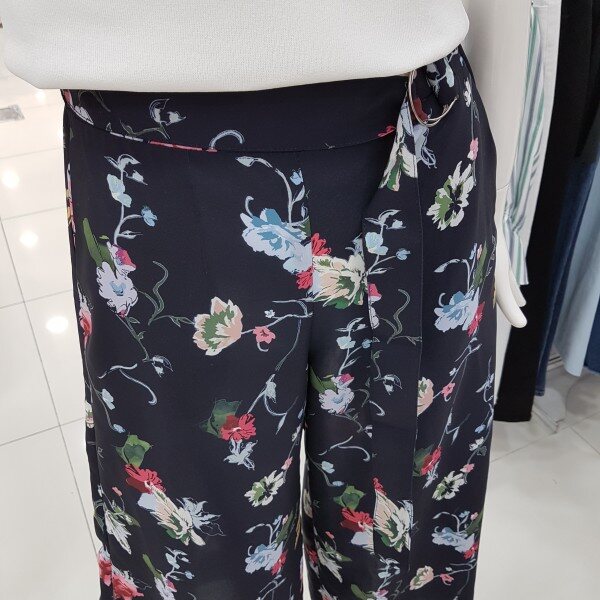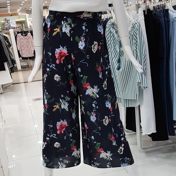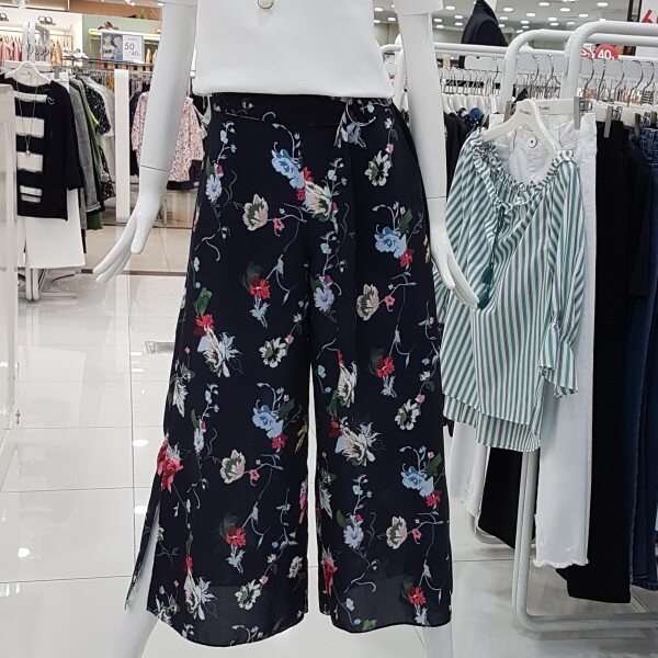 여성스런 플라워프린트에 와이드팬츠네요요아이 밑단옆트임에 하늘하늘 세련하구요뒷고무밴드로 착용감도 넘넘 편하답니다안입은것처럼 편하고 세련한 아이네요^^