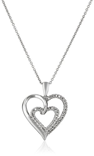 -. Title : Sterling Silver with White Dimaond Heart Pendant Necklace (1/5cttw, I-J Color, I2-I3 Clarity), 18"