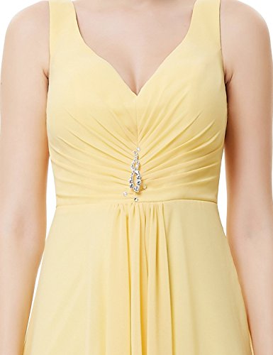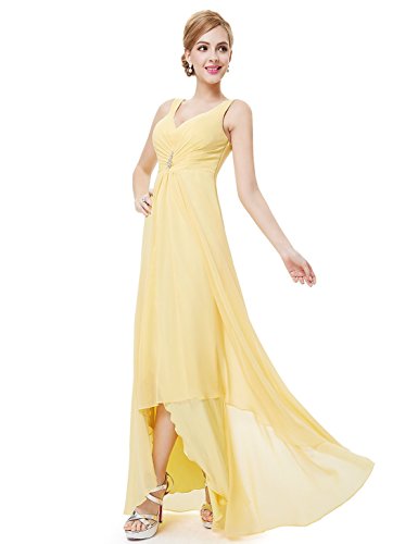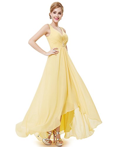 Double v-neck evening dress.Padded enough for "no bra" option.Ruched bust design decorated with nonremovable rhinestones creates a universally flattering silhouette.Unique high low design enhances the elegance of this dress.Concealed side zipper.Lining, no stretch.The center back length of size 6-18 are 133cm,133cm,133cm,133cm,131cm,131cm,131cmFeature
