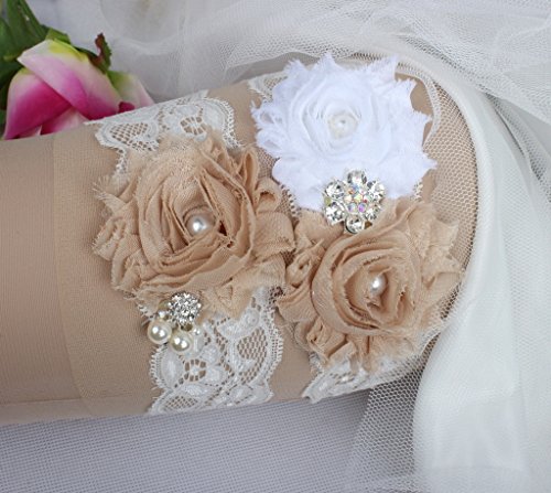 MerryJuly Bridal Garter set Lace with Rhinestones Wedding Garters for Bride Champagne Size XXL