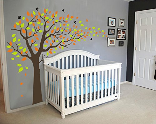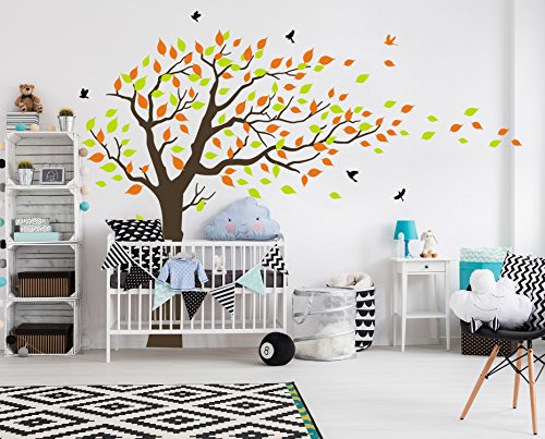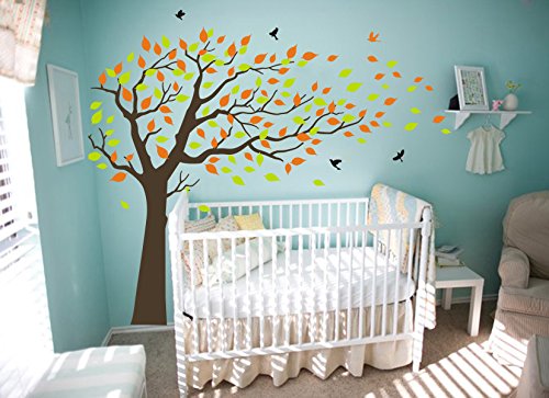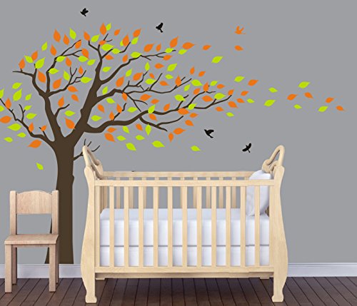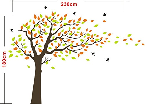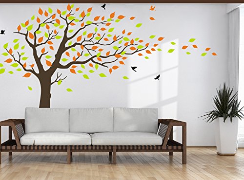 LUCKKYY Large orange and Green Tree Blowing in the Wind Tree Wall Decals Wall Sticker Vinyl Art Kids Rooms
