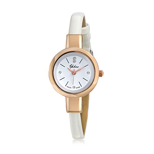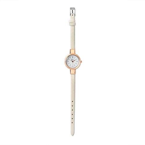 Bling Jewelry Rose Gold Plated Alloy White Leather Thin Womens Watch