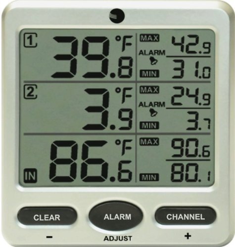 -. Feature : Simple to read, simple to use, and affordable, the WS-09-C includes a thermometer in the console and can remotely read and update up to eight remote thermometer sensors at the same from the large digit, uncluttered display (sold separately). / The WS-09-C includes a display with programmable audible and visual alerts when temperature limits are exceeded. / The WS-09-C supports up to 8 sensors (F007TP, F007T, F007PF) for comprehensive monitoring. / The display console displays temperature, minimum and maximum temperature, which can be reset manually. / The scroll mode allows you to view the indoor thermometer and remote channels without pressing any buttons. In scroll mode, all of the indoor and detected outdoor sensors will be displayed in five second intervals.