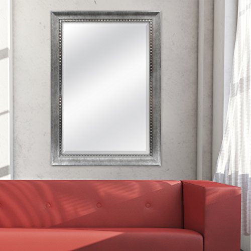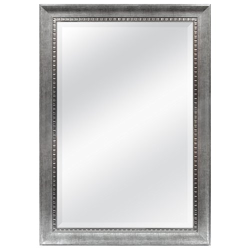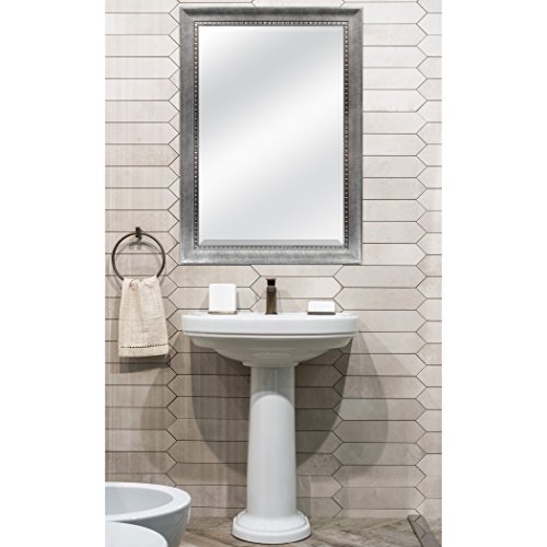 MCS 24x36 Inch Sloped Mirror with Dental Molding Detail, 29.5x41.5 Inch Overall Size, Silver (20565)