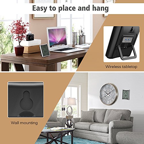 【DESKTOP DESIGN】The Wireless Thermometer&Hygrometer monitor features a fold-out stand for convenient mounting the best thermometer and hygrometer readings at any place. Powered by 2 x AAA batteries(Batteries Not Included).