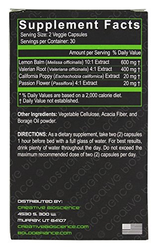 Lemon Balm, Valerian Root Extract, California Poppy and Passionflower combined in a formula to support healthy sleep. Lemon Balm and Valerian Root have been used for years for their apparent sleep-aid and calming properties.