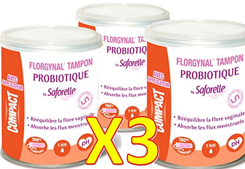 -. Title : Saforelle Florgynal probiotischer Tampon mit Applikator, Größe Mini, Set mit 3 Packungen Größe S mit jeweils 9 Tampons