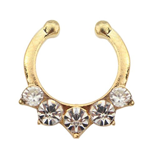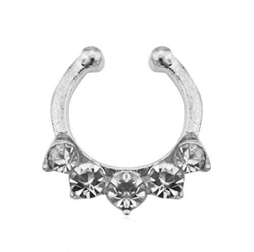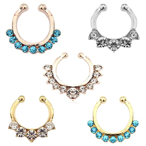 Aoyoho Pack of 5 Clip On Jewelry Fake Septum Clicker Nose Ring Non Piercing
