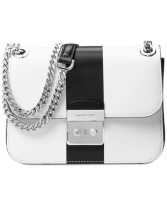 MICHAEL presents a crisp, contemporary spin on ladylike luxury with this sleek shoulder bag, featuring a sumptuous mix of gleaming metallic hardware and soft leather.8-1/4"W x 6"H x 2-1/4"D