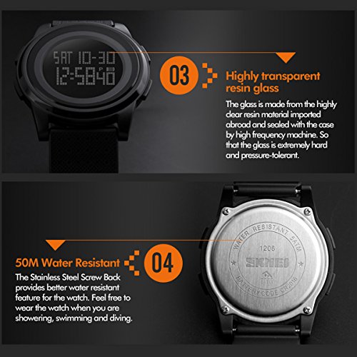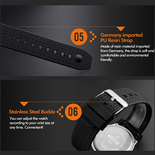 스포츠 워치 방수:164FT방수(50 M) - 5ATM.모든 종류의 스포츠,옥내 및 옥외 활동 또는 매일의 사용에 최적입니다.수중의 버튼은 절대로 누르지 말아 주십시오.