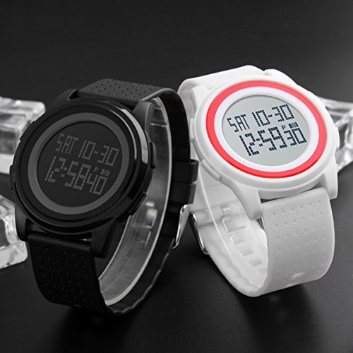 키즈 손목시계 초박형 스포츠 디지탈 방수 크로노그래프 알람 사내 아이 소녀 (블랙)