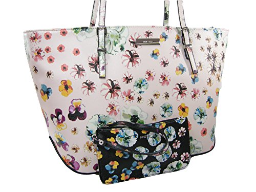New Nine West Logo Purse XL Shoulder Hand Bag Tote & Wristlet Set 2 Piece Flower