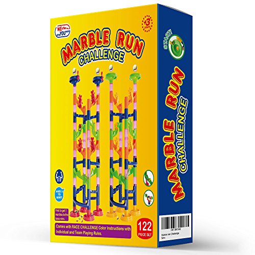 -. Binding : Toy -. Brand : WEofferwhatYOUwant -. EAN : 0741587315599 -. Feature : Marble Race - 156 piece set 36 small pieces are pre-assembled so 122 assmbled pieces. Including 92 multi-color and pre-assembled pieces, and 30 Cats Eye glass marbles / Designed for learning Team play or individual play. You can create your own structures / Races will be close and marbles will NOT get STUCK. Great add on bargain per large pre-assembled pieces / The educational marble game has color instructions and a 20% blue silk washable travel bag / ADD ON to other Compatibile Marble Tower runs. Check for your connector size (bottom inner diameter is 16mm or 5/8th inch and outer diameter is 18.3mm just less than 3/4 inch) with 12mm almost 1/2 inch Peewee marbles. -. Genre : Action -. IsAdultProduct : 0 -. Label : www Limited -. Manufacturer : www Limited -. ProductGroup : Toy -. ProductTypeName : TOYS_AND_GAMES -. Publisher : www Limited -. Studio : www Limited -. Title : Marble Run Challenge 122 piece set. Race to the Bottom. Marbles Will Not Get Stuck. -. UPC : 741587315599