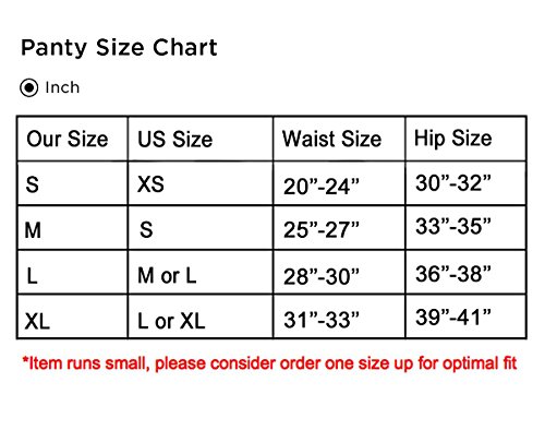 -. Feature : ☆ABSOLUTE COMFORTABLE: Our ladies underwear fabric cotton and spandex, crotch: 100% Cotton. Our briefs panties is low waist with sexy soft lace trim, the fabric is super soft and breathable, gives you comfort feelings. No binding or pinching and they are pretty. This lingerie underwear is perfect for women / ☆ELEGANT DESIGN: Our underwear designed with elegant flounce lace trim and with sexy low-rise, sexy with a little nifty, adorable. The delicate flounce lace back hipster briefs offer you a beautiful shape back hip / ☆FITTING: Our Women Stretch Underwear Available size: S, M, L, XL. S: waist 20 inches-24 inches, hips 30 inches-32 inches, M: waist 25 inches-27 inches, hips 33 inches-35 inches, L: waist 28 inches-30 inches, hips 36 inches-38 inches, XL: waist 31 inches-33 inches, hips 39 inches-41 inches / ☆EXCELLENT CRAFTSWORK: The waistband with delicate elastic lace, soft and no marks, excellent craftwork briefs, durable and won't lose their shape in a long time / ☆OTHER TIPS: For our underwear, we recommend hand wash with cold water, and please wash this lace trim panties separately from other clothes