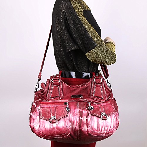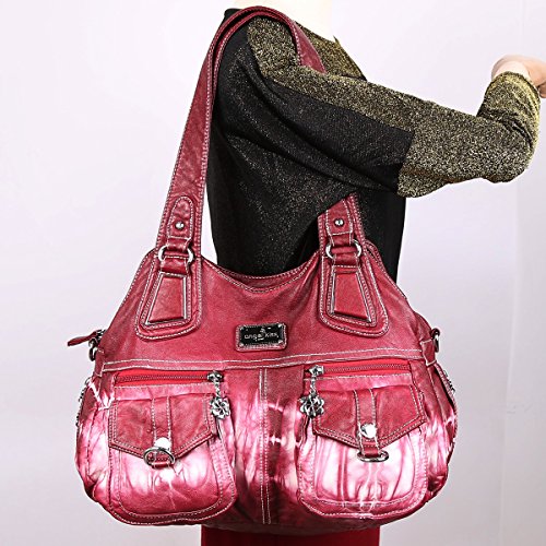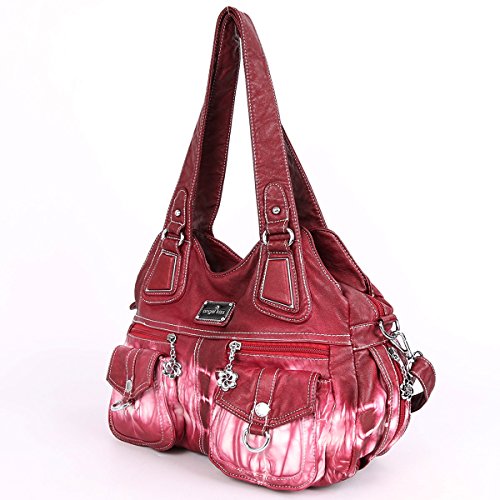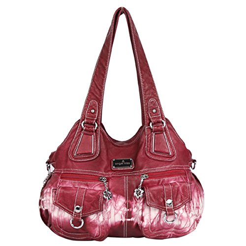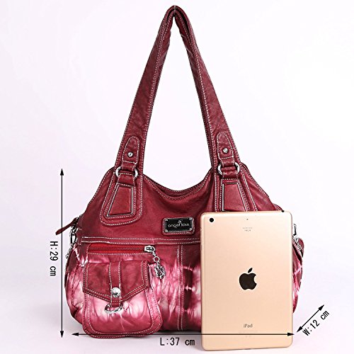 Angelkiss 3 Top Zippers Multi Pockets Handbags Washed Leather Purses Shoulder Bags Backpack 1593/2Z