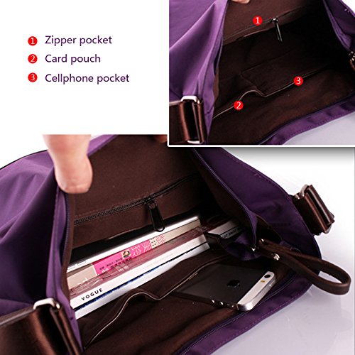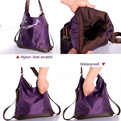 Mily Women Nylon Waterproof Shoulder Bag Backpack Hand Bag Cross Body Bag,Good for Travel Purple