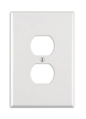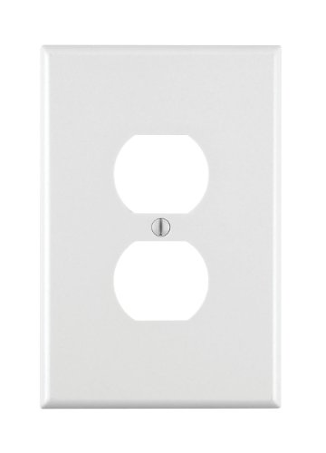 Leviton 1-Gang Duplex Device Receptacle Wallplate, Oversized. Familiar and functional, Leviton Traditional Wallplates are designed for use with Traditional Leviton devices. They represent styles and form factors that have stood the test of time. Their clean lines work in virtually any location, whether in new or retrofit construction, and they install quickly and easily. Leviton offers Traditional Wallplates in a vast array of colors and configurations. 1-Gang Duplex Device Receptacle Wallplate, Oversized, Thermoset, Device Mount, White.Feature