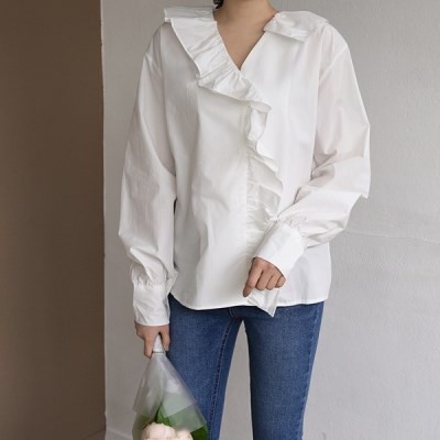 러블리한 디자인의 브이넥 러플카라 블라우스를 소개해드릴게요