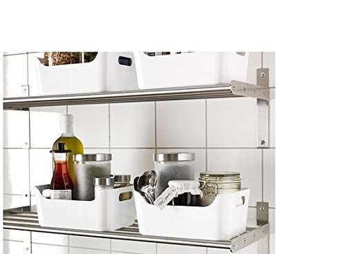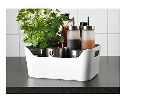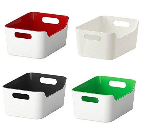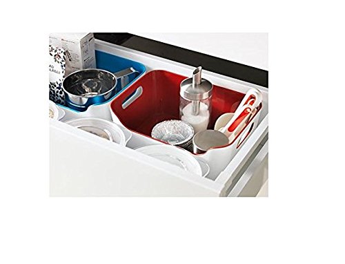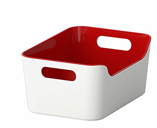 Open storage box,Kitchen Cabinet and Pantry Storage Organizer Bin - two cut-out handles that make 9.4 x 6.75 x 4.3 Inches (Red /White)