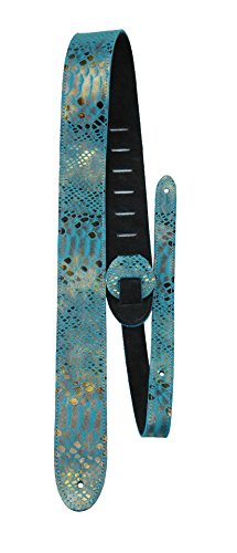 -. Title : Perris P20SK-7000 2" Sky Blue & Gold Metallic Snake Skin Leather Guitar Strap