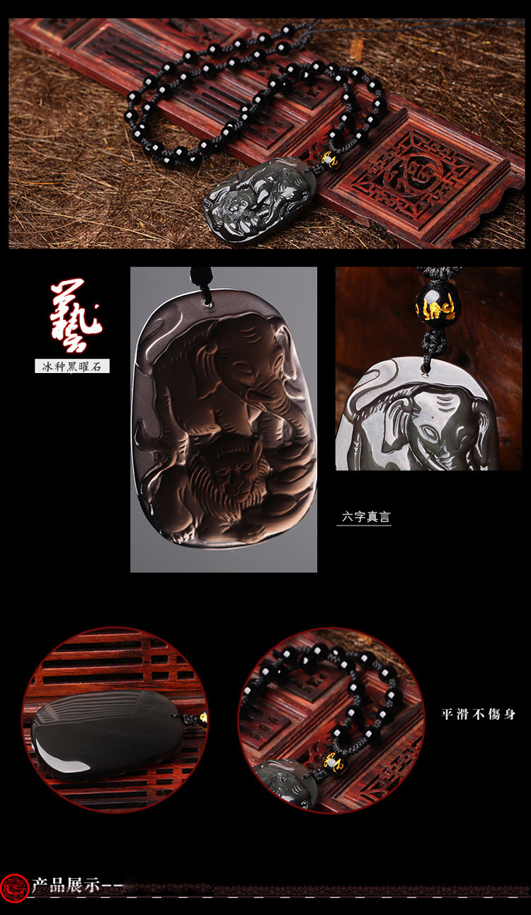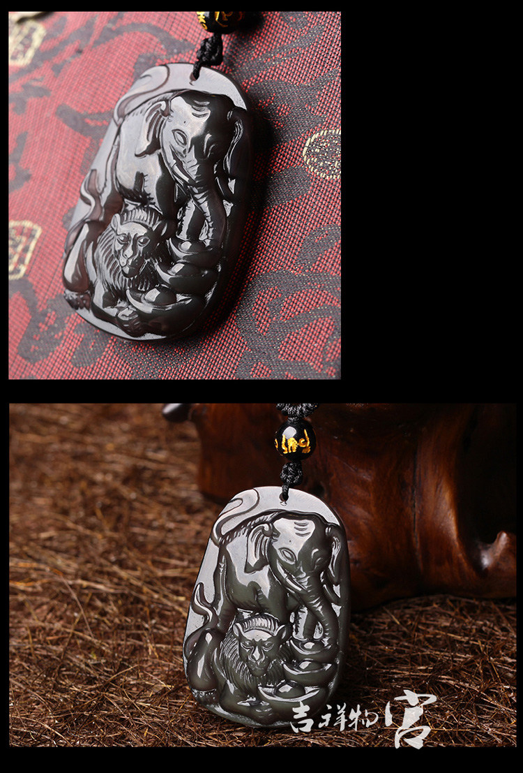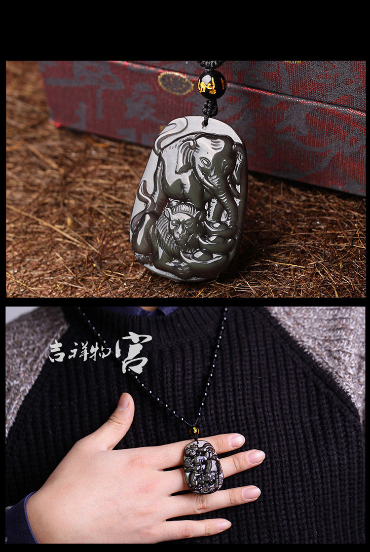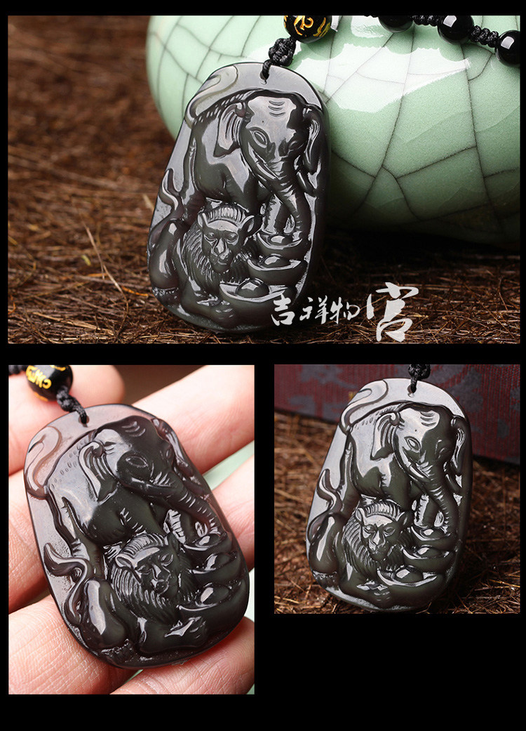 开光冰种黑曜石曼唯宝象镇财吊坠森林神兽风水象宝象旺财 护身符