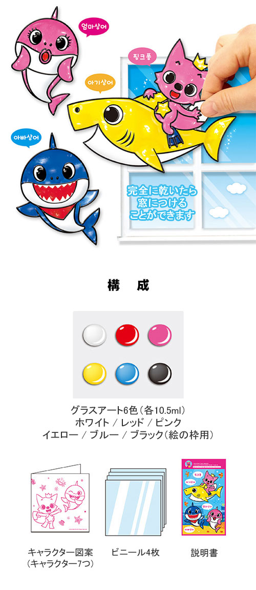 韓国おもちゃ PINKFONG(ピンクポン) サメのかぞく グラスアート / グラスデコ(6色)
