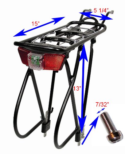 Studio : BIRIA Publisher : BIRIA Product Description Aluminum 3-leg rear carrier. Alloy 8-inch struts included, adjustable for 24 inch to 700C wheels. Reflector bracket, spring flap, and mini-pump holder. Capacity for 3-leg carrier is 50 lbs. Includes spring retention systems, Reflector included ................................................ This rack fits almost any bike, 815g with hardware. ................................................ This rack comes with three sets of screws and two sets of nuts. One set of screws and nuts are for the leg parts of the rack where it is installed and attached to the bicycle. The size of the leg screw is 7/32". Please be advised that these screws will fit most bicycle holes made for rear rack legs. However, due to variety of different bicycle designs, there are bicycles that these screws for rack legs may not fit your bicycle. In this case you may need to purchase additional screws in order to install this rack to your bicycle. This rear rack comes with screws that have hexagonal sockets in the head. Therefore, you will need an Allen wrench to install this rack. Please note that your bike must have mounting eyelets on the seat stays in order to fit the rack. If you don't have these eyelets, Please email us and we will send you a pair of braces that you can use to mount this rack to you bicycles. ------------------------------- 0