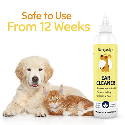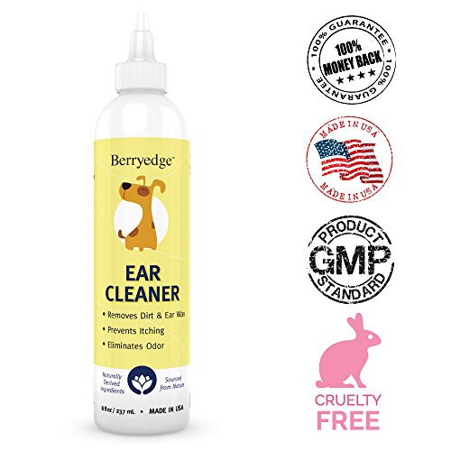 -. Binding : Misc. -. Brand : Berryedge -. EAN : 0646437809627 -. Feature : REMOVES EAR WAX DIRT & DEBRIS - With over 30 applications in one bottle this gentle but effective ear cleaner for dogs can be used frequently to keep your buddies ears clean & healthy / PREVENTS EAR INFECTION - This dog ear cleaner protects ears against bacteria yeast & ear mites, the main cause of most ear infections. Don't let a minor problem turn into a disaster / FAST RELIEF FROM ITCHING - Stop head shaking & scratching! The non-irritating & soothing solution reduces irritation & inflammation. Soon after the first application your pet will start to feel relief / ODOR FREE EARS - The mild citrus fragrance keeps ears clean fresh & smelling great. Specially formulated to cleanse away bad odors without damaging the skins natural lipid barrier / SOURCED FROM NATURE - NO NASTIES! The quality ingredients derived from Coconut & Palm are high in Proteins & Vitamin E. Great for all pets over 12 weeks, sensitive skin or allergies -. Label : JNR Products -. Manufacturer : JNR Products -. PackageQuantity : 1 -. ProductGroup : Pet Products -. ProductTypeName : PET_SUPPLIES -. Publisher : JNR Products -. Studio : JNR Products -. Title : Ear Cleaner for Dogs - Keep Ears Clean Healthy & Smelling Great - No More Ear Wax Bad Odors or Itching - Prevent Yeast & Mite Infections - Safe & Natural Solution for Dogs & Cats - Made in USA 8 fl oz -. UPC : 646437809627
